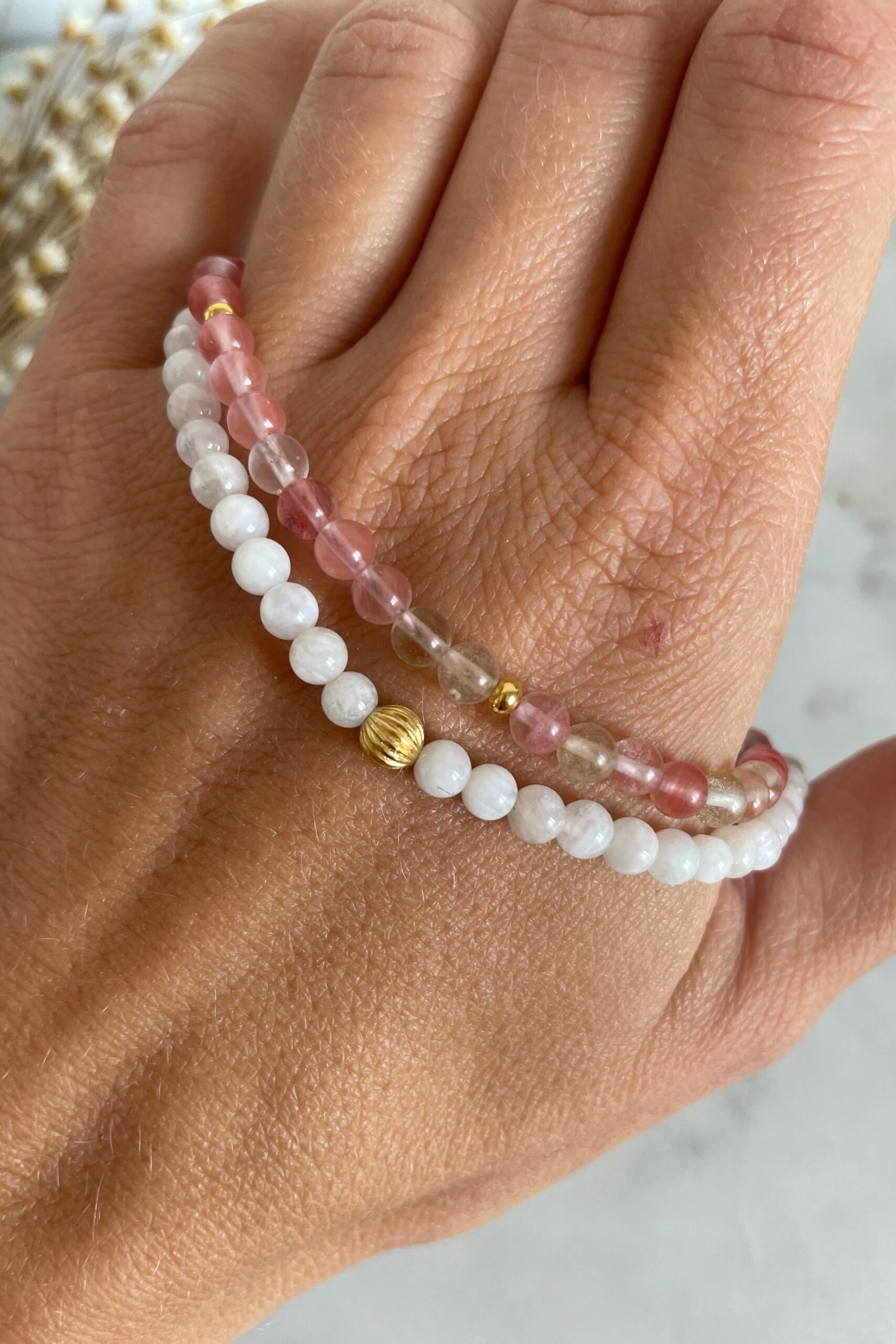 -22% Wyłącz 109,00 złPierwotna cena wynosiła: 109,00 zł.85,00 złAktualna cena wynosi: 85,00 zł.Ta bransoletka to połączenie rodonitu, rodochrozytu i kulek z muszli w pastelowym, różowym kolorze.