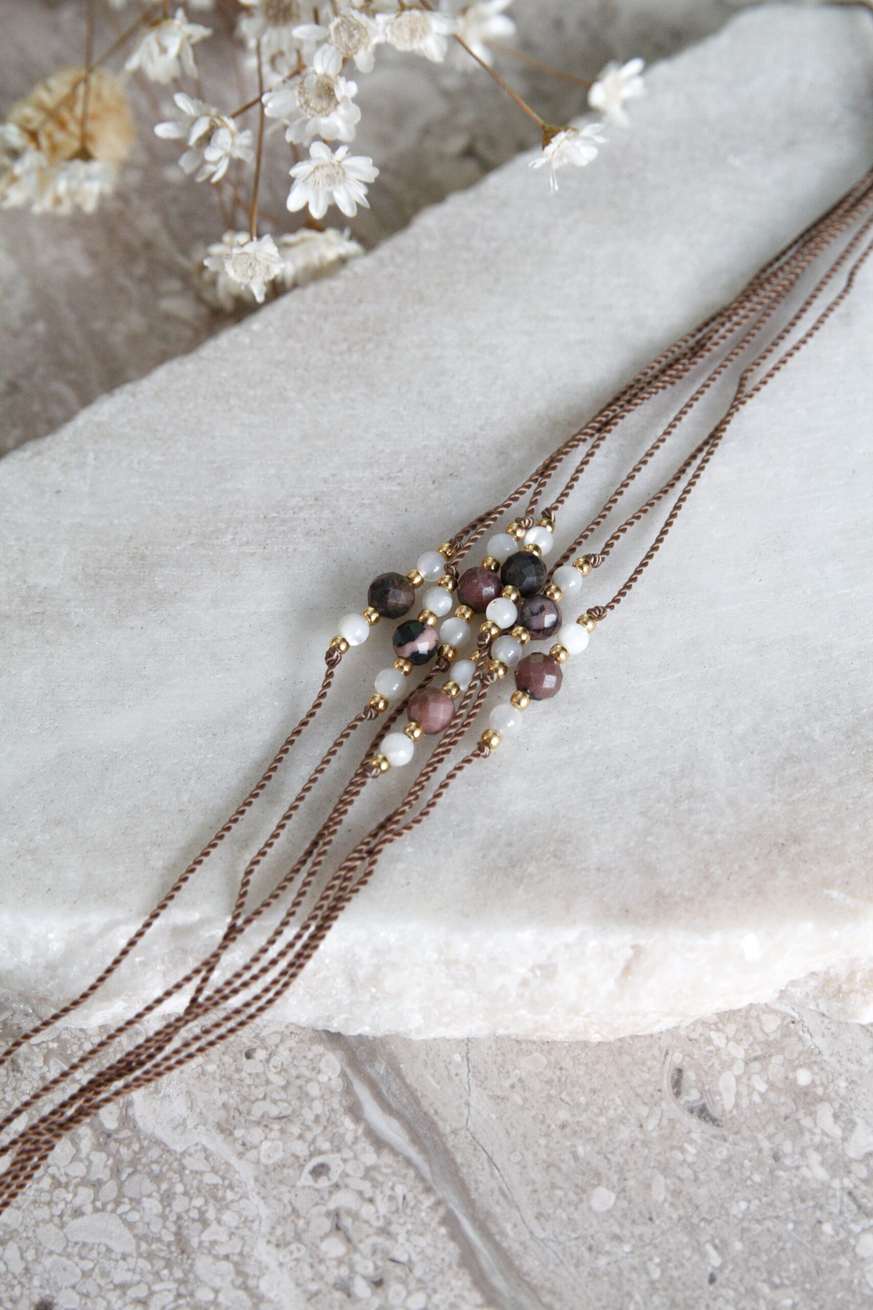 Bransoletka posiada stoper – zapięcie z sylikonem, umożliwiające dopasowanie jej obwodu do dowolnego rozmiaru nadgarstka (od około 13 cm do ok. 22 cm). Sznureczek użyty do wykonania bransoletki jest nylonowy.