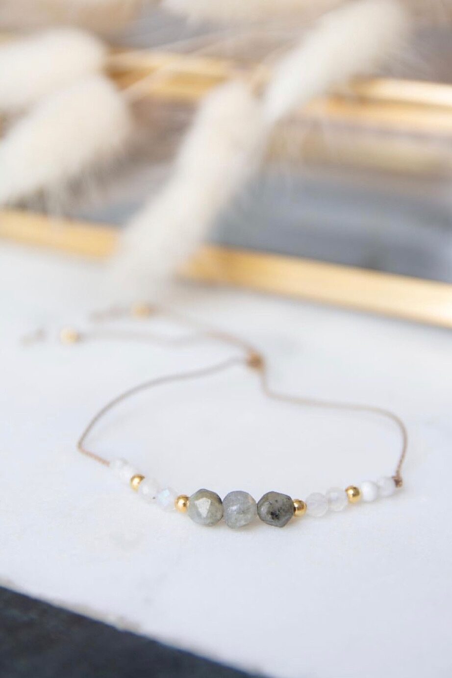 Bransoletka posiada stoper – zapięcie z sylikonem, umożliwiające dopasowanie jej obwodu do dowolnego rozmiaru nadgarstka (do ok. 22 cm). Sznureczek użyty do wykonania bransoletki jest nylonowy.