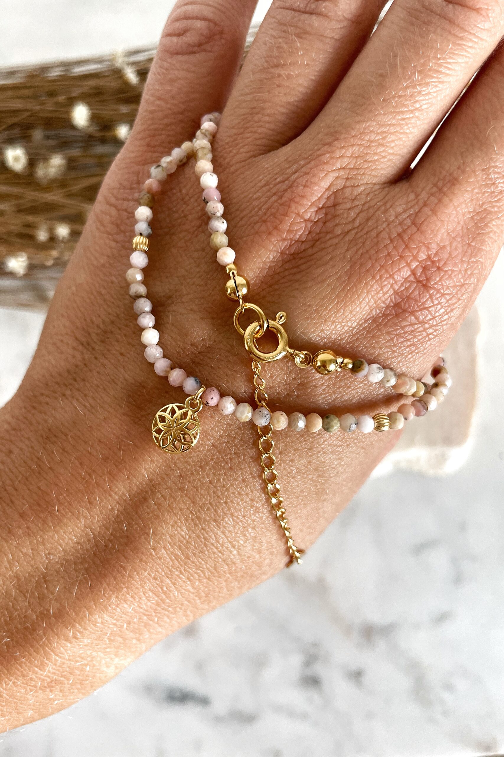 Będzie się pięknie komponował z bransoletką Amalfi na nogę lub inną bransoletką z opalu – Ofelią. Zajrzyj koniecznie i skomponuj swój zestaw.
